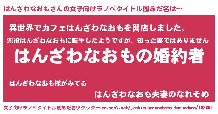 | ファンタジー風あだ名 | 『エターナルハンザワナオモー』 |