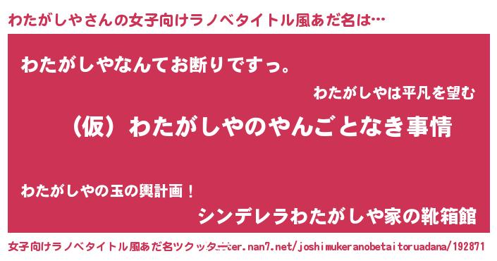 | 意味不明あだ名 | 『ペロリンわたがしや』『自称わたがしや』 |