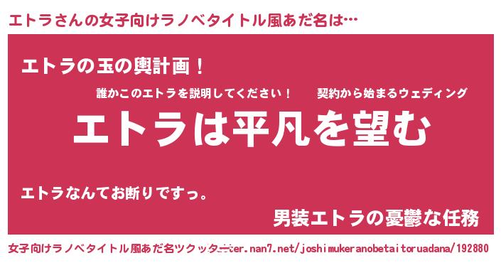 | 胡散臭い通販商品みたいなあだ名 | 『信頼と実績のサプリメント…その名も「エトラ」』 |