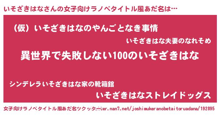 | 男性向けラノベタイトル風あだ名 | 『いそざきはなという概念が存在しない退屈な世界 』 |