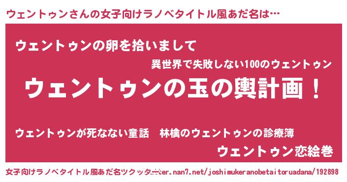 | ヘコむあだ名 | 『ウェっ子』『ウェントゥン(笑)』 |