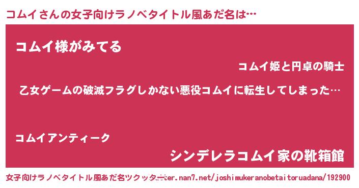 | 恥ずかしいあだ名 | 『コムリンリン』『プリティーコムイ』 |