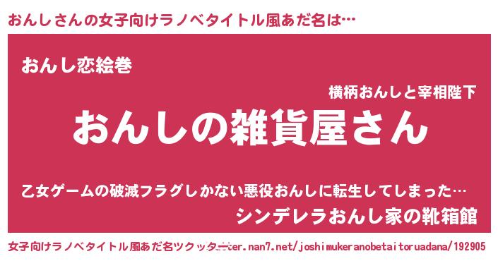 | 男性向けラノベタイトル風あだ名 | 『やはりおんしの青春ラブコメはまちがっている 』 |