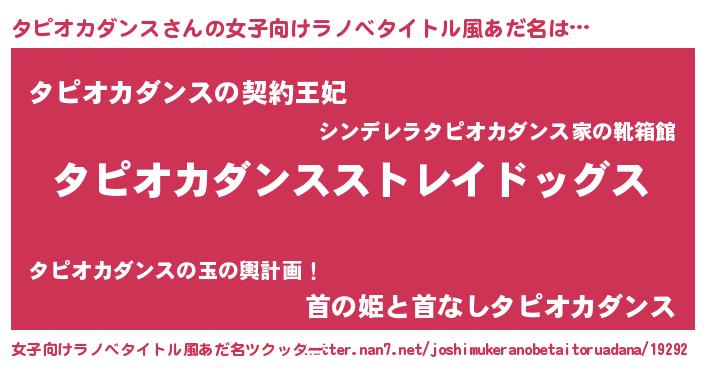 | 男性向けラノベタイトル風あだ名 | 『Re:タピオカダンスから始める異世界生活』 |