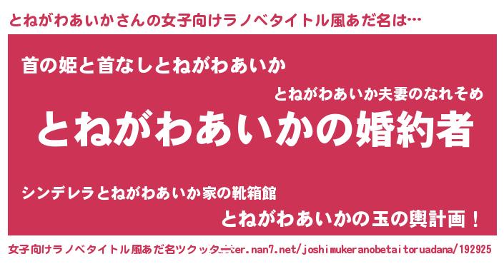 | 欧米人風あだ名 | 『とねがわあいかクリステル』 |