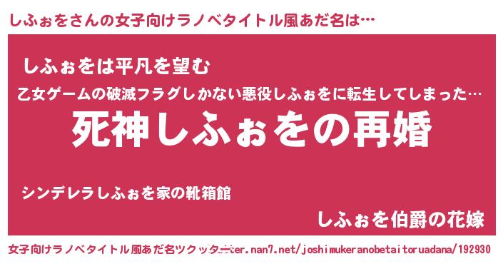 | 男性向けラノベタイトル風あだ名 | 『ノーゲーム・ノーシフォヲ』 |