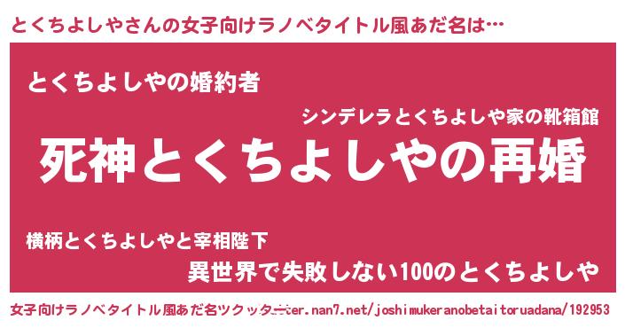 | 男性向けラノベタイトル風あだ名 | 『ノーゲーム・ノートクチヨシヤ』 |