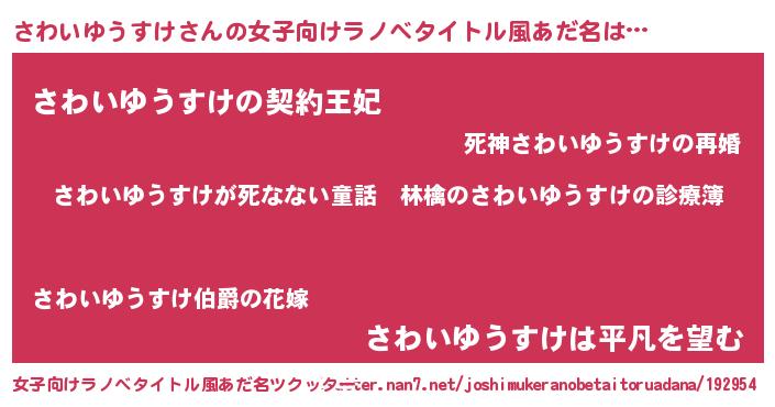 | 可愛いあだ名 | 『ぽよさわ』『さわいゆうすけママ』 |