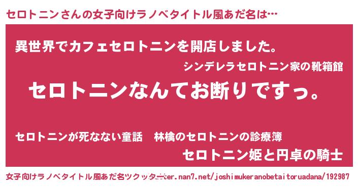 | ヒーロー風カッコイイあだ名 | 『超時空戦士セロトニン』『仮面セロダー』 |