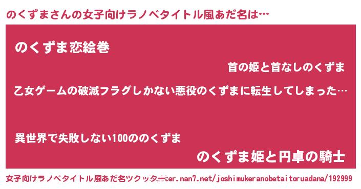 | 男性向けラノベタイトル風あだ名 | 『魔弾の王とのくずま』 |