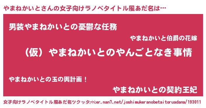 | 男性向けラノベタイトル風あだ名 | 『やまねかいとの憂鬱』 |