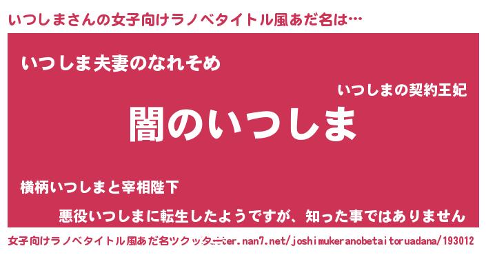 | 男性向けラノベタイトル風あだ名 | 『Re:いつしまから始める異世界生活』 |