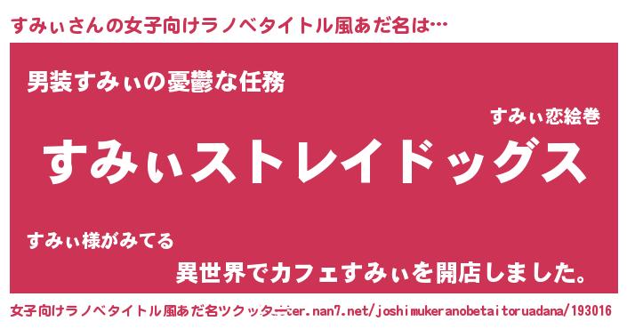 | 男性向けラノベタイトル風あだ名 | 『Re:すみぃから始める異世界生活』 |