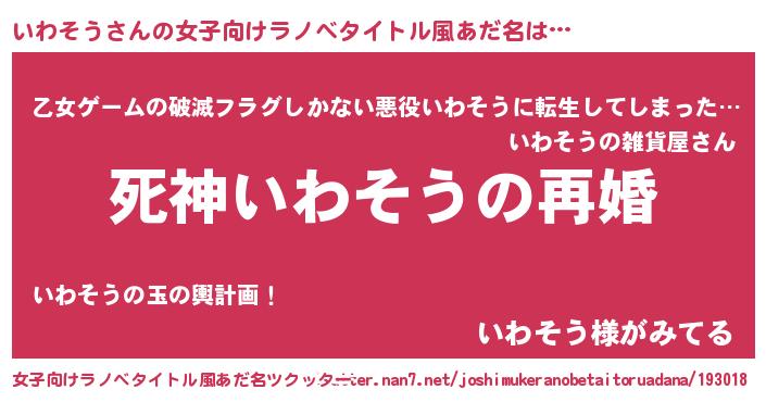 | 男性向けラノベタイトル風あだ名 | 『ノーゲーム・ノーイワソウ』 |