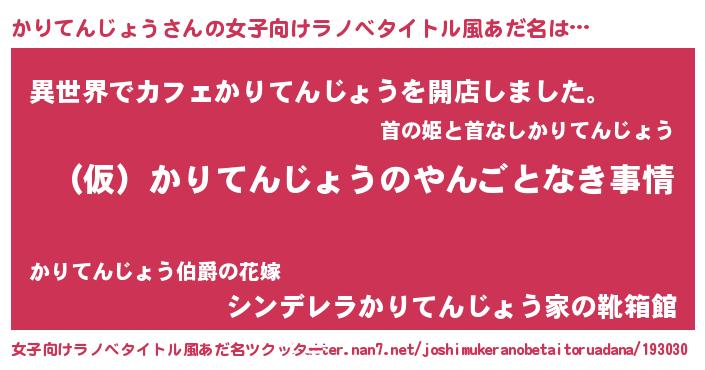 | 男性向けラノベタイトル風あだ名 | 『かりてんじょうの憂鬱』 |