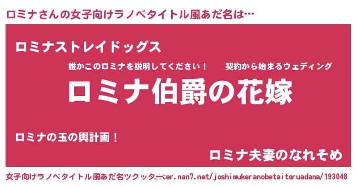 | 意味不明あだ名 | 『ロミナフォーエバー』『自称ロミナ』 |