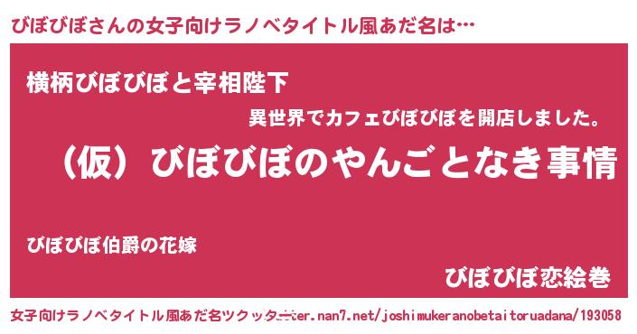 | 男性向けラノベタイトル風あだ名 | 『びぼびぼの憂鬱』 |