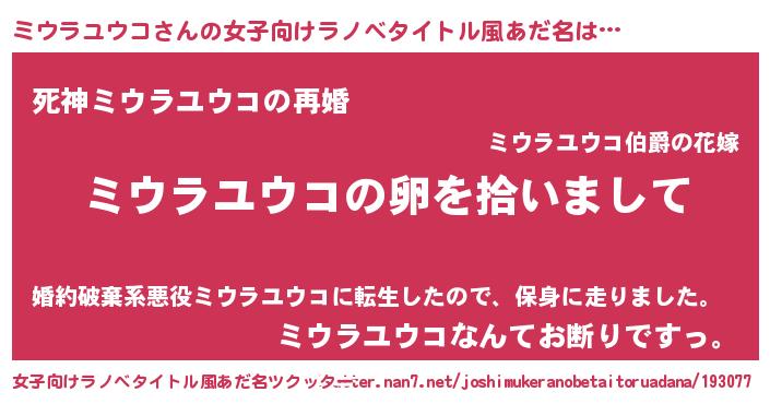 | 男性向けラノベタイトル風あだ名 | 『ダンジョンにミウラユウコを求めるのは間違っているだろうか』 |