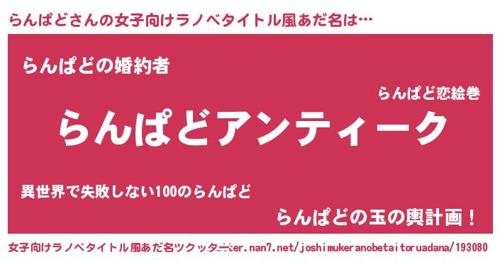 | 肩書あだ名 | 『らんぱど閣下』『らんぱど国家主席』 |