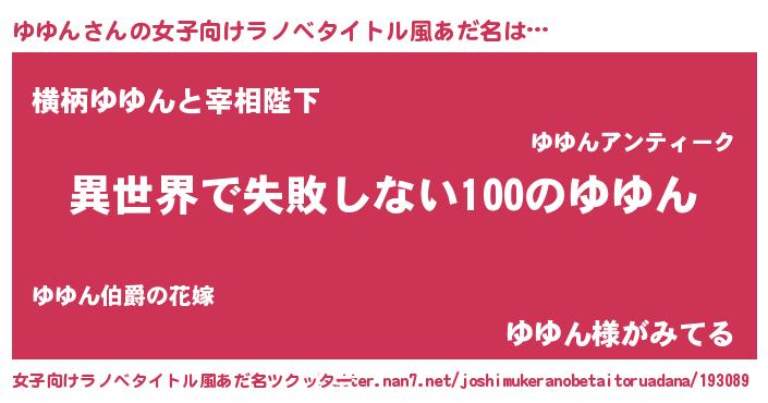 | 男性向けラノベタイトル風あだ名 | 『ゆゆんという概念が存在しない退屈な世界 』 |