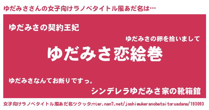 | ヘコむあだ名 | 『ゆだみさ(爆)』『ゆだっぺ』『豆乳』 |