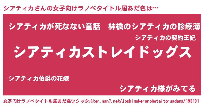 | 男性向けラノベタイトル風あだ名 | 『Re:シアティカから始める異世界生活』 |