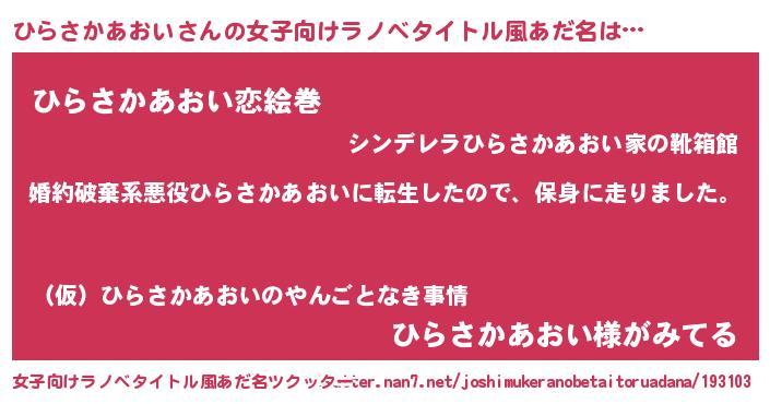 | 肩書あだ名 | 『ひらさかあおい少将』 |