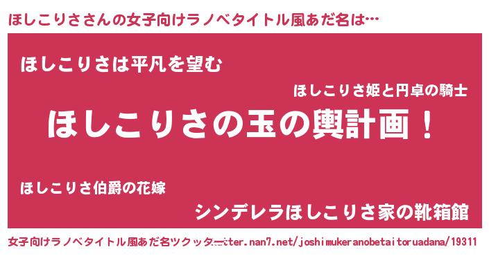 | ヒーロー風カッコイイあだ名 | 『幻影騎士ホシ』『スーパーホシコリサ』 |