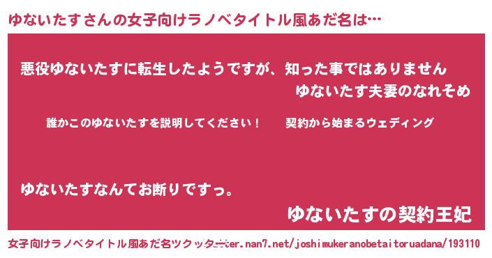 | 胡散臭い通販商品みたいなあだ名 | 『億万長者になれる水晶球…その名も「ゆないたす」』 |