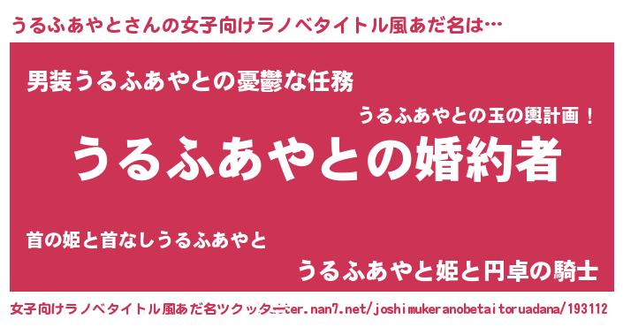 | 意味不明あだ名 | 『うるふあやとフォーエバー』 |
