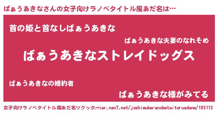 | 欧米人風あだ名 | 『ケンブリッジばぁうあきな』 |