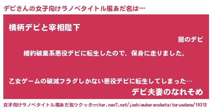 | ヘコむあだ名 | 『デビ(笑)』『デビにゅー』 |