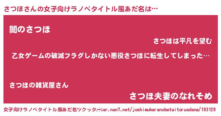 | 意味不明あだ名 | 『住所不定無職さつほ(89歳)』『自称さつほ』 |