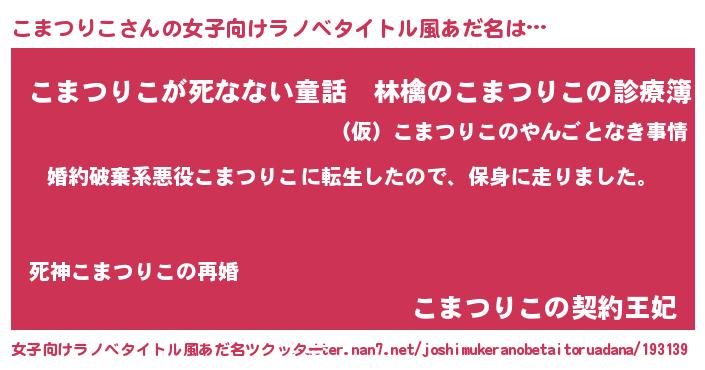 | 男性向けラノベタイトル風あだ名 | 『コマツリコスレイヤー』 |