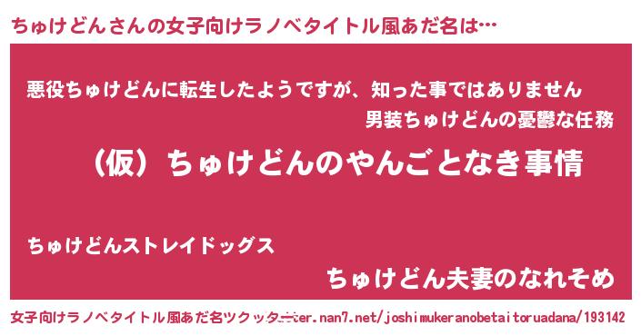 | 男性向けラノベタイトル風あだ名 | 『ちゅけどんの憂鬱』 |