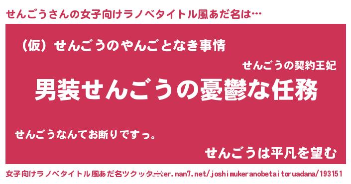 | 男性向けラノベタイトル風あだ名 | 『うちのせんごうが世界を掌握している!』 |
