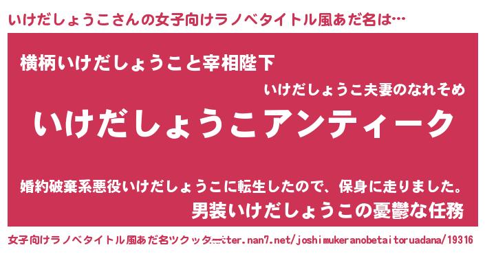 | 肩書あだ名 | 『いけだしょうこ総統』 |