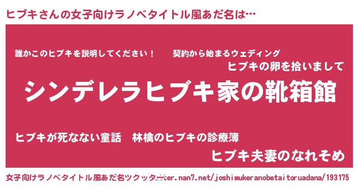 | 胡散臭い通販商品みたいなあだ名 | 『モテモテ間違いなし霊験あらたかなお札…その名も「ヒブキ」』 |