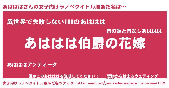 | 男性向けラノベタイトル風あだ名 | 『やはりあはははの青春ラブコメはまちがっている 』 |