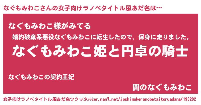 | 男性向けラノベタイトル風あだ名 | 『ナグモミワコアートオンライン』 |