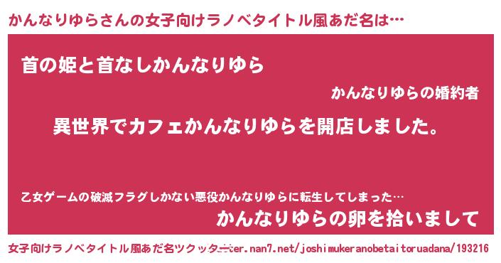 | 意味不明あだ名 | 『永久保存かんなりゆら』 |