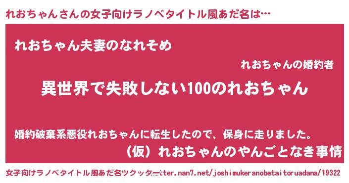 | 男性向けラノベタイトル風あだ名 | 『れおちゃんという概念が存在しない退屈な世界 』 |