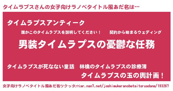 | 意味不明あだ名 | 『自称タイムラプス』 |