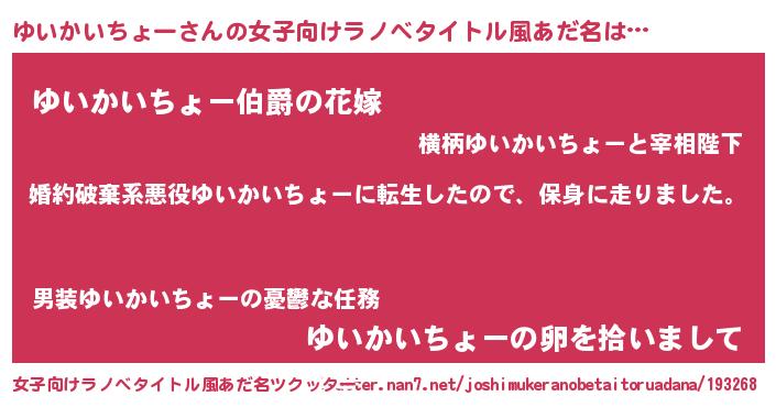 | 男性向けラノベタイトル風あだ名 | 『ユイカイチョースレイヤー』 |