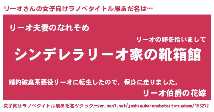 | 男性向けラノベタイトル風あだ名 | 『緋弾のリーオ』『リーオスレイヤー』 |