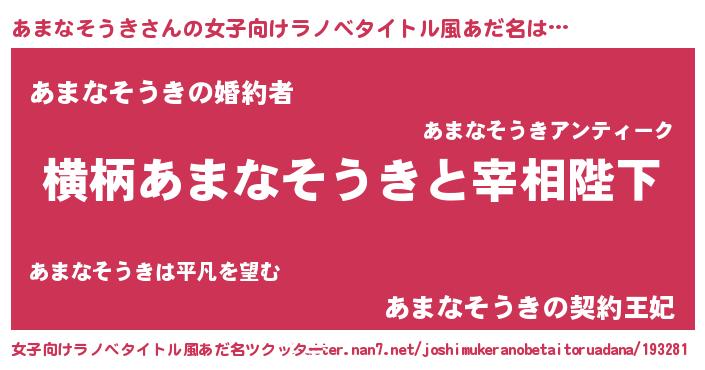 | 男性向けラノベタイトル風あだ名 | 『あまなそうきに滅ぼされるだけの簡単なお仕事です』 |