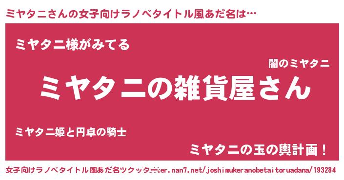 | 男性向けラノベタイトル風あだ名 | 『やはりミヤタニの青春ラブコメはまちがっている 』 |