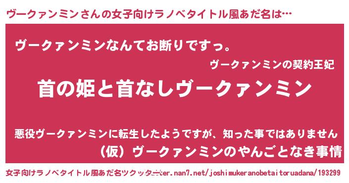 | 男性向けラノベタイトル風あだ名 | 『はたらくヴークァンミンさま!』 |