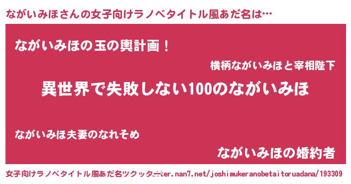 | 男性向けラノベタイトル風あだ名 | 『ながいみほという概念が存在しない退屈な世界 』 |