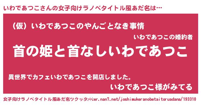 | 男性向けラノベタイトル風あだ名 | 『はたらくいわであつこさま!』 |